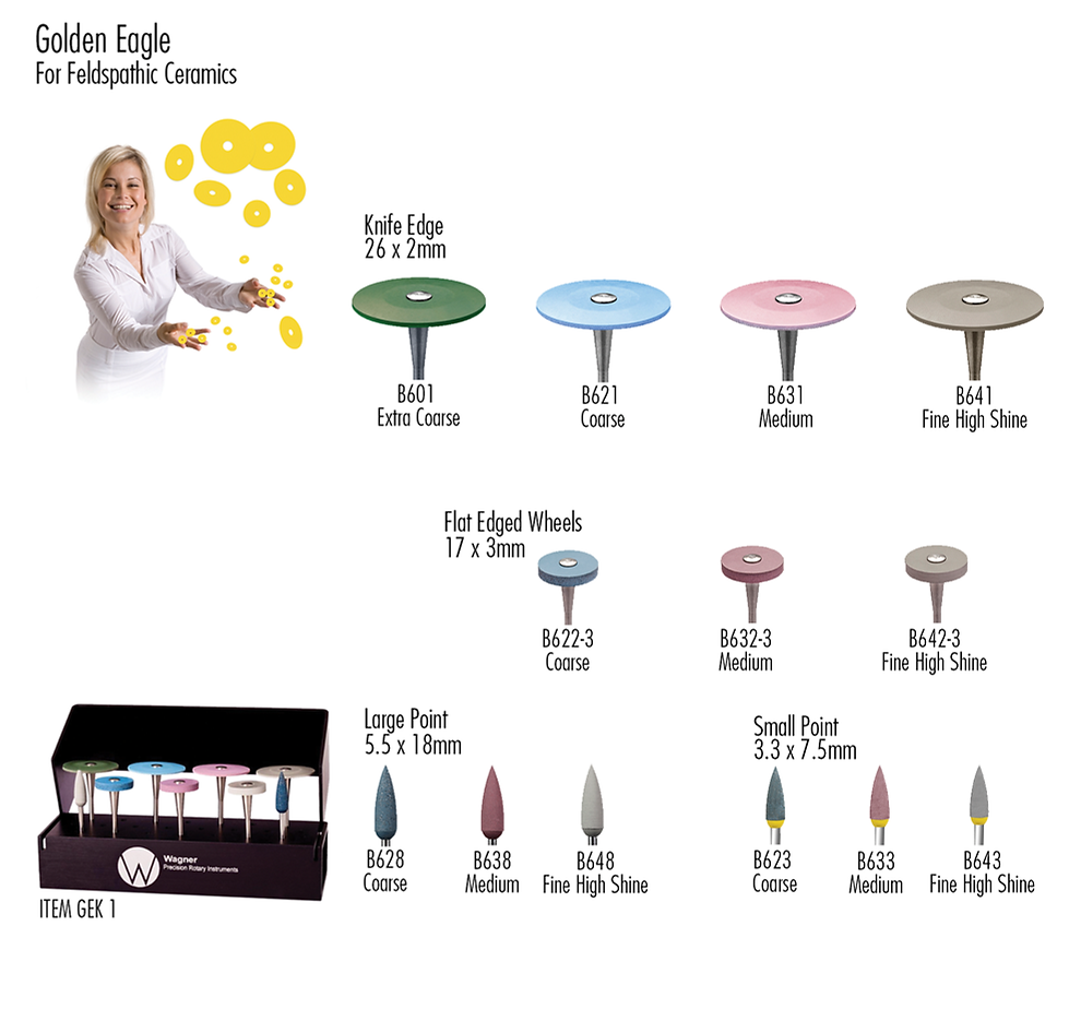 Our Golden Eagles are infused with a high percentage of diamond and contour feldspathic ceramic beautifully. We also removed the yellow centers to give you more usable disc.